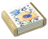 New CounterArt Blue Wildflower Design Square Absorbent Coasters in Wooden Holder, Set of 4